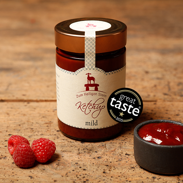 … verleihen dem Ketchup seinen unvergleichlichen Geschmack. Der handgemachte Ketchup der Marke “Zum Heiligen Stein” passt zu Fleisch, Fisch oder Gemüse. So ist der milde Ketchup auf seine Art etwas ganz Besonderes. Nicht zu scharf und nicht zu würzig ist er nicht nur für die Grillparty ein Muss. Vegan. Glutenfrei.